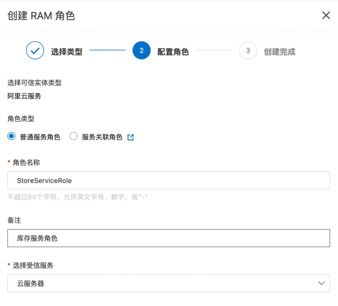 创建 RAM 角色: