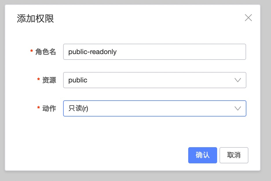 创建角色后,为该角色添加对应的权限策略: