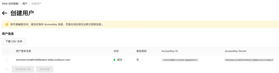 然后获取到用户的?AK/SK: