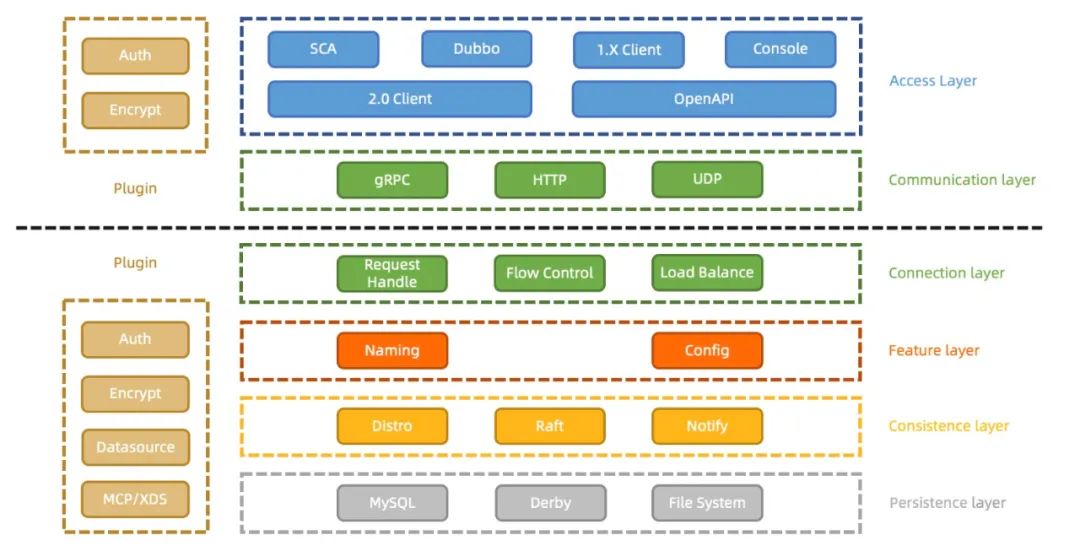Nacos2.X 将在 2.0 解决性能问题的基础上,通过插件化实现新的功能并改造大量旧功能,使得