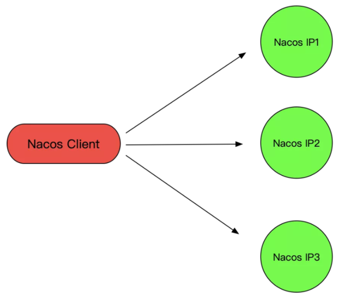 如果有一天,Nacos 的 IP 变了,例如扩缩容,机器置换,集群迁移等场景,所有的应用都需要修改,这样的方式并不灵活。所以并不是生产推荐的模式。