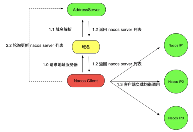 Nacos 部署模式而言,地址服务器模式是除了 VIP 模式之外,另外一个生产可用的推荐部署方式。