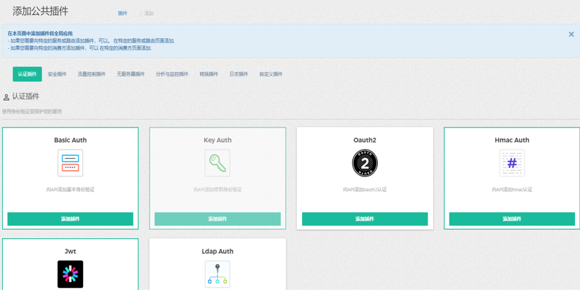 比如当前网关提供basic-auth,key-auth、ldap-auth,hmac-auth多种认证插件。