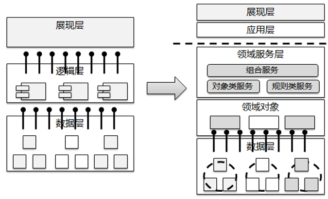 其二是逻辑层的微服务基于复用分层思路拆分为三个微服务模块