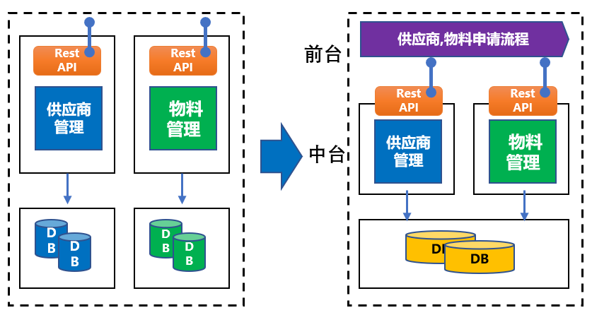 那么供应商数据本身属于中台能力,供应商信息的申请流程可属于前台应用功能。