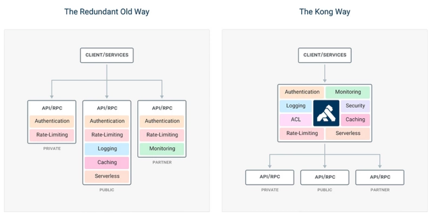 当然,你也可以不用类似Kong等API网关产品,那么这个时候我们常说的一些共性的安全,日志,限流熔断能力无法实现。但是最基本的代理路由转发能力是必须的,因此你在前期可以使用类似Ngnix来实现请求转发并替代API网关的使用。