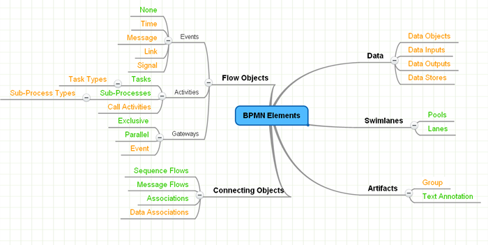 - 数据元素:数据对象(DataObject)、输入数据(Data Input)、输出数据(Data
