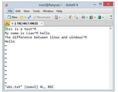 例如,我手动创建一个一行的文本,在文本中加入一个回车符^M: