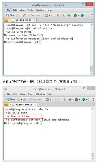 得出结论:sed会把文件中的^M当作文件内容来处理,因此如果用sed处理windows下创建的文本文件,很有可能在处理之后显示时出现讨厌的^M.