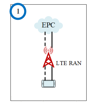 LTE目前的部署方式,由LTE的核心网和基站组成。5G的部署便是以此为基础。
