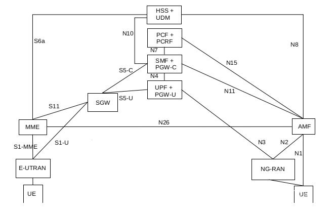 5GC和EPC互操作的结构,看一下非漫游场景,其他场景见23.501