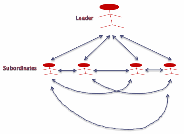相比上一个模型,这里的领导有更大责任和权力。领导与团队成员一起或个别沟通,总在寻找最佳解决方案和想法。