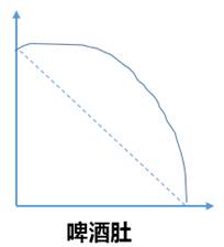Case2:啤酒肚。特征:圆弧状,且实际曲线一直在理想直线上方。图形如下: