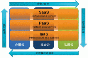 不同的云计算的服务方式和不同的云计算的分配方式的组合,导致云计算用户对云计算系统资源的监控和定制的程度的不同。图1展示了不同的云计算模式对用户监控、定制水平、抽象程度、规模经济效益的影响。