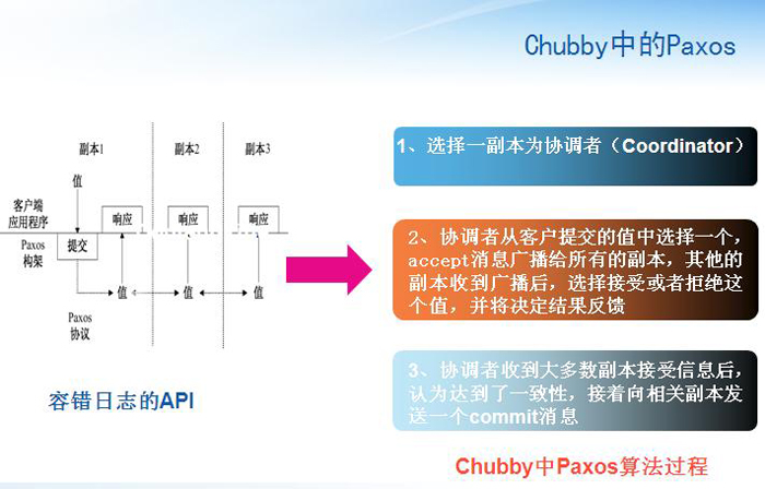 每个Chubby单元是由五个副本组成的,这五个副本中需要选举产生一个主服务器,这种选举本质上就是一个一致性问题。实际执行过程中,Chubby使用Paxos算法来解决
