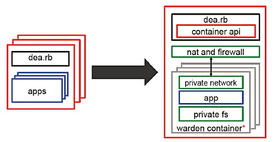 Foundry开发出了Warden,用这个程序运行容器解决这一问题。这个容器提供了一个隔绝环境,Droplet只可以获得受限的CPU、内存、磁盘访问权限和网络权限。