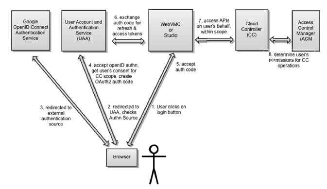 随着Cloud Foundry逐渐成熟,权限管理功能在新版本中逐渐完善。在原有的用户模型基础上,加入了组织和用户空间等概念,细化了管理模型。用户模型的认证是由UAA模块实现的。在企业环境中,如果用Cloud