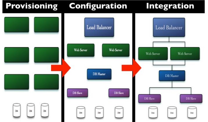 下面举两个目前较为流行的例子,给出大家云和虚拟化技术对自动化部署时基础设施管理提供的便利。