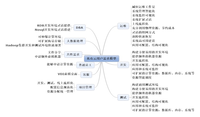 不同的角色对于软件服务的需求也是不同的,下图大致描绘了互联网行业各个角色对云平台的需求: