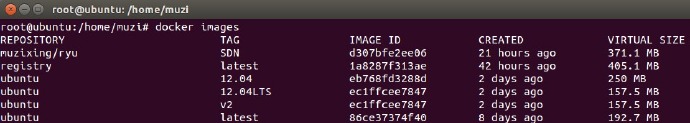 以上命令为读取ryu.tar 将其导入成muzixing/ryu:sdn的image。完成之后可通过docker images查看。