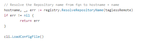 在运行时,上面的taglessRemote变量会被传入localhost:5000/ubuntu。上面代码试图从taglessRemote变量中解析出Registry的地址,在我们的例子中,它是localhost:5000。