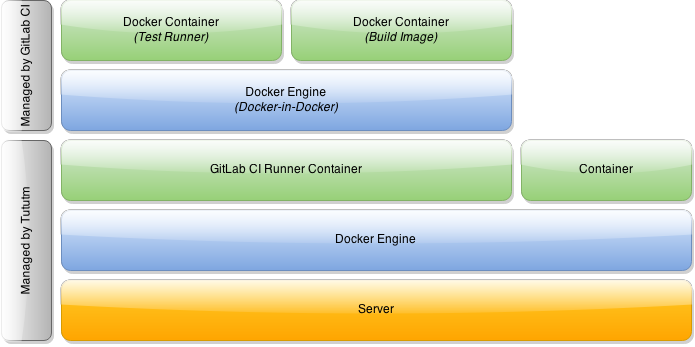 CI引擎实际上使用Docker构建镜像并运行测试,这意味着我们有两个嵌套层次。
