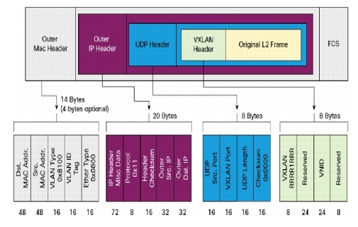 1.24bit的VNID:vxlan技术在原有mac帧基础上添加了新的mac头、ip头、vxlan