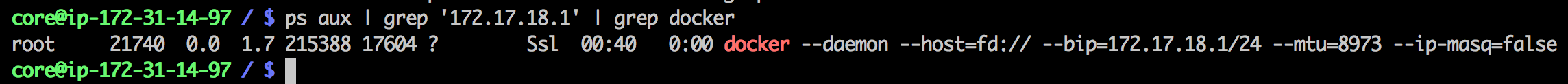 sudo mk-docker-opts.sh -i source /run/flannel/subnet.env sudo rm /var/run/docker.pid sudo ifconfig docker0 ${FLANNEL_SUBNET} |