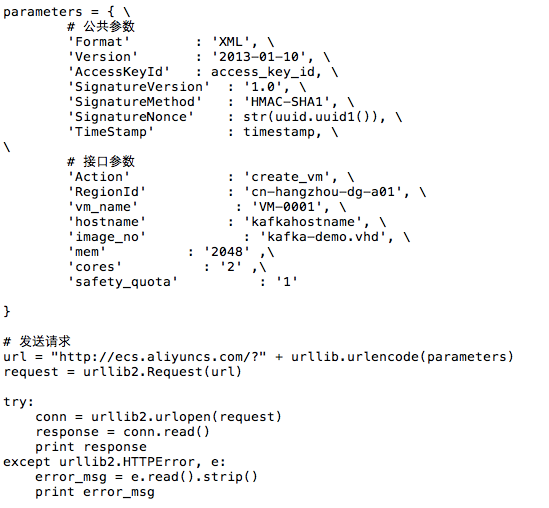 REST API自动通过镜像创建机器。可以参考以下Python代码,自动创建阿里云ECS虚拟机: