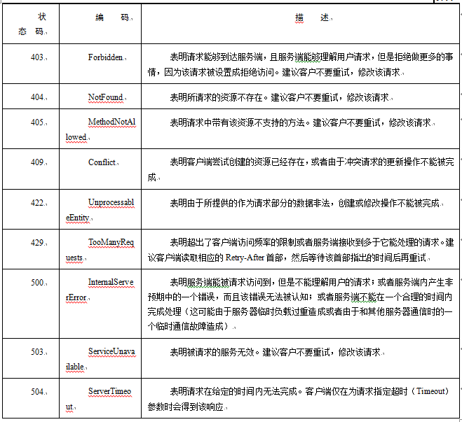 ±í3.1 API Server¿ÉÄÜ·µ»ØµÄ״̬Âë