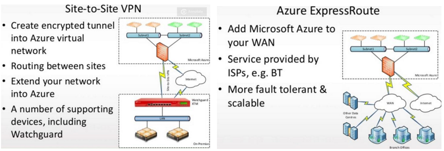 各个公有云提供商都提供VPC高速通道专线接入和第三方安全厂商VPN公网接入两种方式来将客户的私有云和在公有云上的 VPC 连接起来。