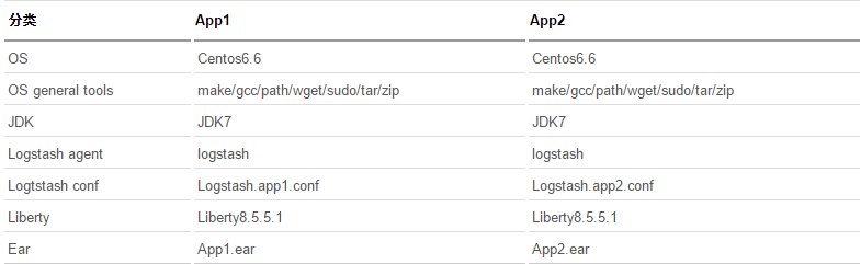 表 1. 分布式应用环境配置需求对照表