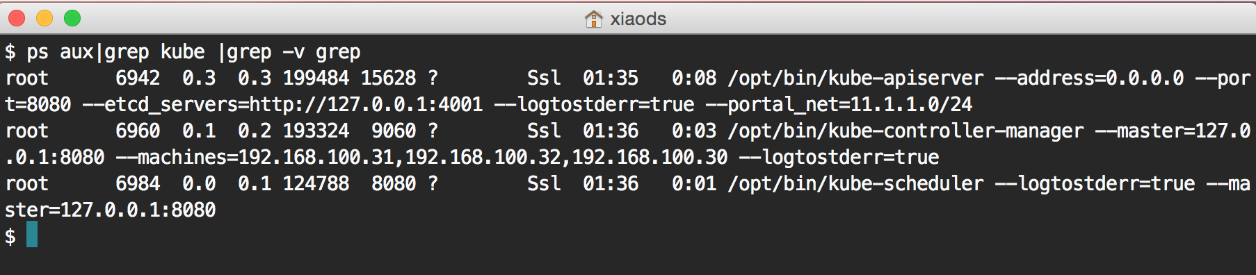(1)master节点,主要的服务是kube-apiserver、kube-controller-manager、kube-scheduler,如下截图显示需要保证能运行: