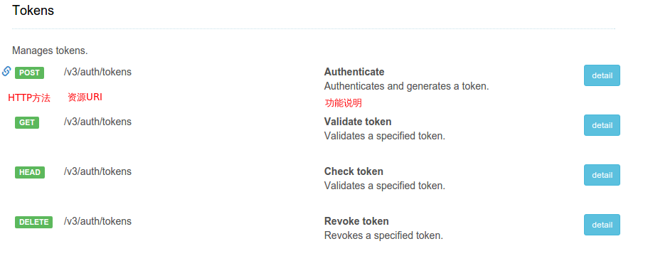 当然,你可以点开detail看到详细的说明。从上面这个API的文档来看,你会觉得这个和开发网站时使用的GET方法和POST方法差不多,实际上也是差不多的,只不过对HTTP协议的使用方法做了满足REST风格的规定而已。