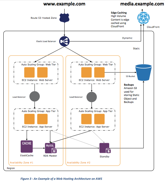 EC2的模式,非常直接和高效地实现整个业务的跨可用区高可用设计。例如,下图来自AWS网站托管白皮书上的建议架构