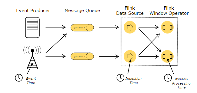 在处理Stream中的记录时,记录中通常会包含各种典型的时间字段,Flink支持多种时间的处理,如下图所示: