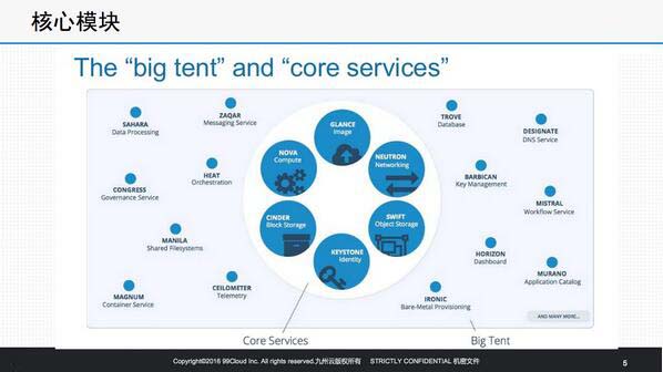 在2015年,Openstack 引入了“大帐篷”策略。这个策略是指先定义出来一些必须用到的核心模块,像Nova、Glance、Swift这些,剩下的再根据用户实际需求选用。采用大帐篷策略以后,项目爆长,为了应对用户对虚拟机、容器、物理机等等上面的需求,Openstack变得越来越复杂。