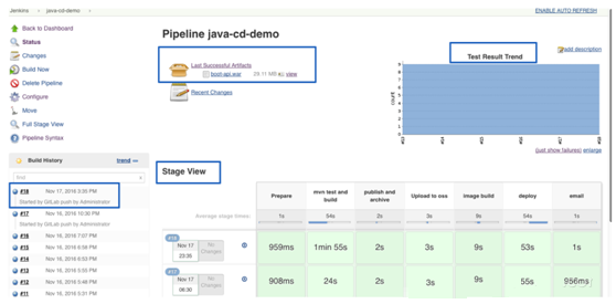 Stage是对整个持续交付流程的清晰定义,是由自己写出来,单元测试结果也可以完美的展示,每一个阶段的耗时等可以直接读取日志查看,也可以在本地存储软件打包的结果。