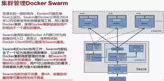 Swarm是Docker容器的机器管理工具,使得Docker机器能够有效的被管理起来,另外,Docker还有个打包工具叫DockerFile。