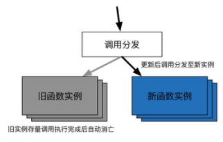 支持业务可持续发展,需提供用户函数平滑升级及版本变更能力,当用户更新函数代码或配置后,新调用请求被分发至新函数实例,原调用请求执行完成后,旧函数实例自动消亡,服务在客户不感知情况下平滑更新。即将支持用户函数多版本管理,将函数别名映射至用户指定版本,在客户不感知情况下实现多版本间平滑切换。