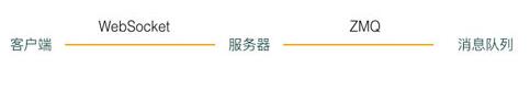 就拿云帮而言,需要实时推送的是每个应用的日志信息和业务监控数据。那么我们在处理实时消息时就采用了WebSocket与ZMQ相结合的方式,快速实现将应用日志信息推送到web端。其简化模型如下所示: