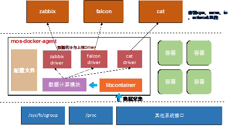 针对业务和运维的监控需求,我们基于 libcontainer 开发了 mos-docker-agent