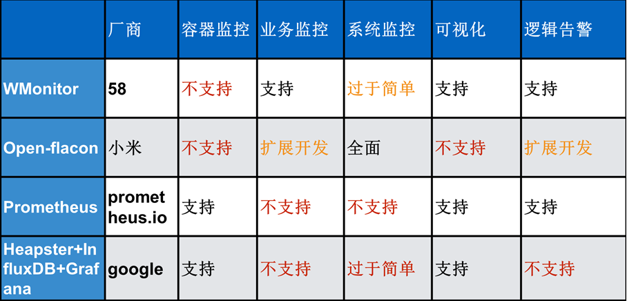 资源的监控和报警也是一个云平台必不可少的部分。针对容器的监控有很多成熟的开源软件可供选择,58内部也有专门的监控组件,如何更好的监控,云团队也进行了相应的选型。