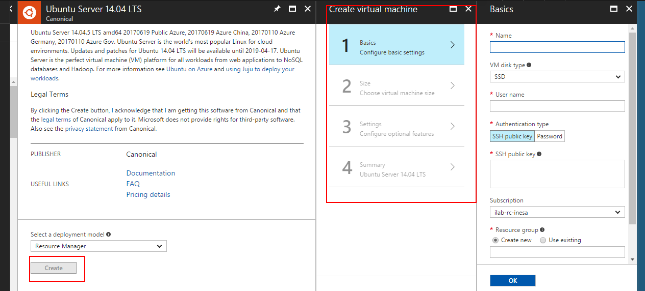- 一种是Azure的默认类型CreateVMWizardBlade,如下图共 四步,一般都采用这种类型。
