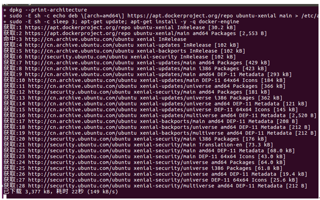 输入当前用户的密码后,就会下载脚本并且安装Docker及依赖包。