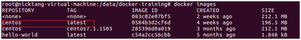 Tag为latest就表示是最新版本的centos系统镜像。因为会从docker hub拉取没有的镜像,所以算【增】里面。
