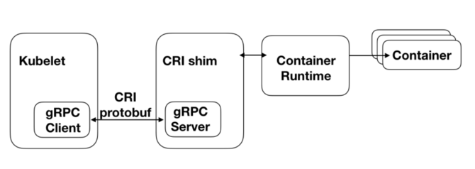 shim的角色。当Kubelet调用一个CRI接口时,请求就会通过Kubelet的gRPC Client发送到上图的gRPC