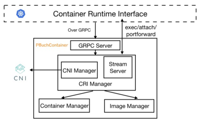 在PouchContainer的整个架构体系中,CRI Manager实现了CRI定义的全部接口,担任了PouchContainer中CRI