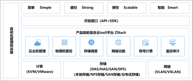 ZStack是基于专有云平台4S(Simple简单,Strong健壮,Scalable弹性,Smart智能)标准设计的下一代云平台IaaS软件。