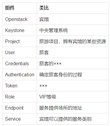 如果把宾馆比作为Openstack,那么宾馆的中央管理系统就是Keystone,入住宾馆的人就是User